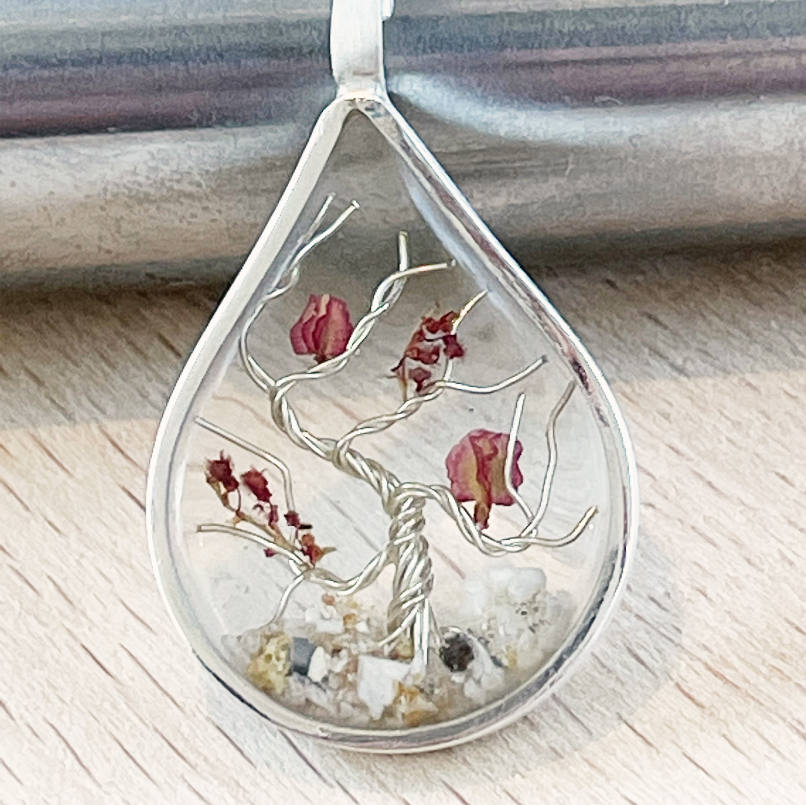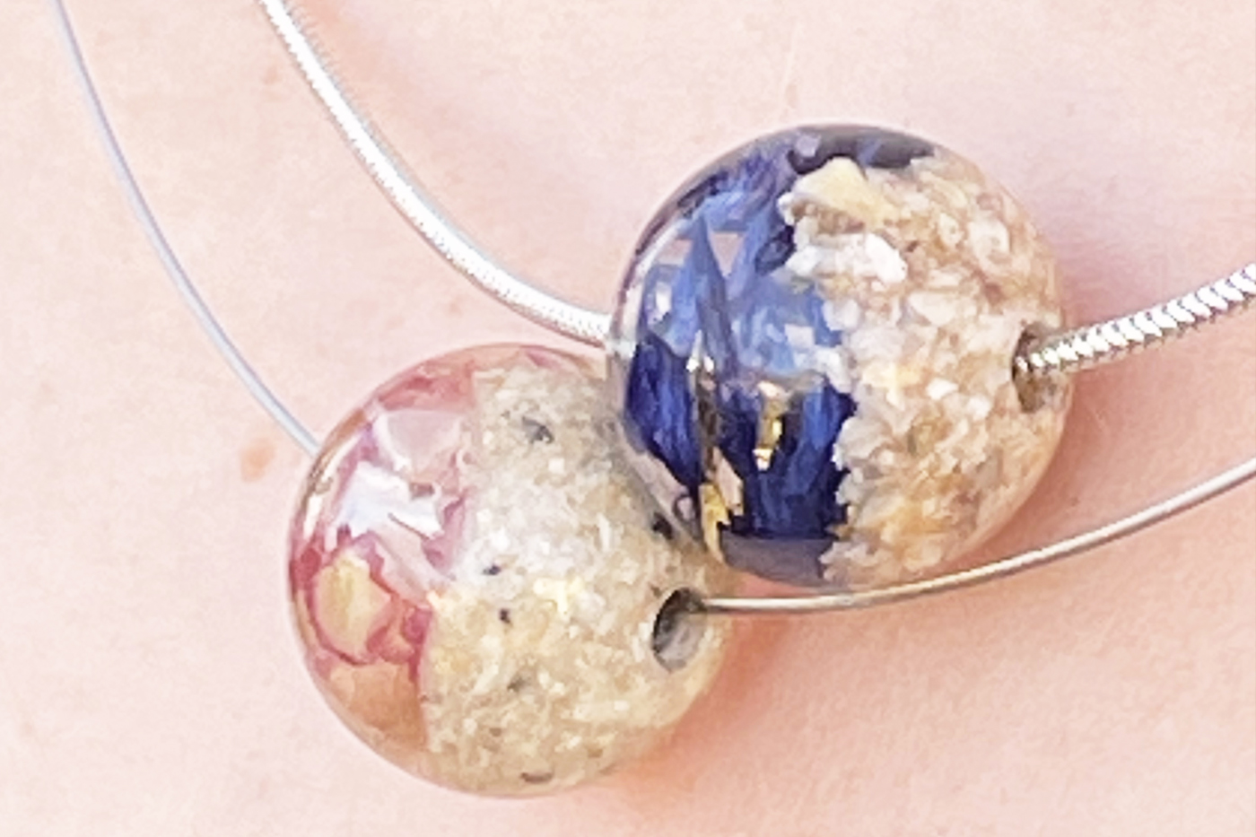 Grundlage des Schmucks ist die Asche deiner verstorbenen Fellnase. Wir sammeln Blüten und Gräser in der Natur, welche über Farbe, Symbolik oder einfach deinen persönlichen Vorlieben deine Erinnerungen wiedergeben. Blattgold, Haare deines Lieblings, Materielles, Spirituelles aus eurer gemeinsamen Welt – alles, das für dich Nähe repräsentiert, fließt mit ein. So einzigartig und bezaubernd wie dein bester Freund. Unser individueller, maßangefertigter Schmuck gibt es ab 220 EUR inklusive einer Silberkette (ca. 45 cm Länge).